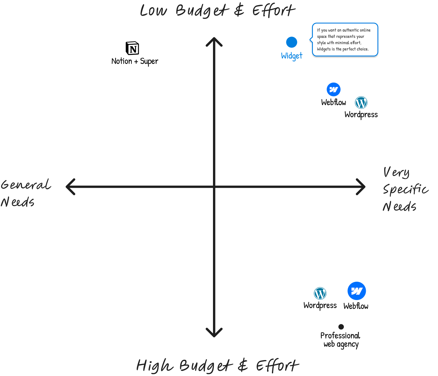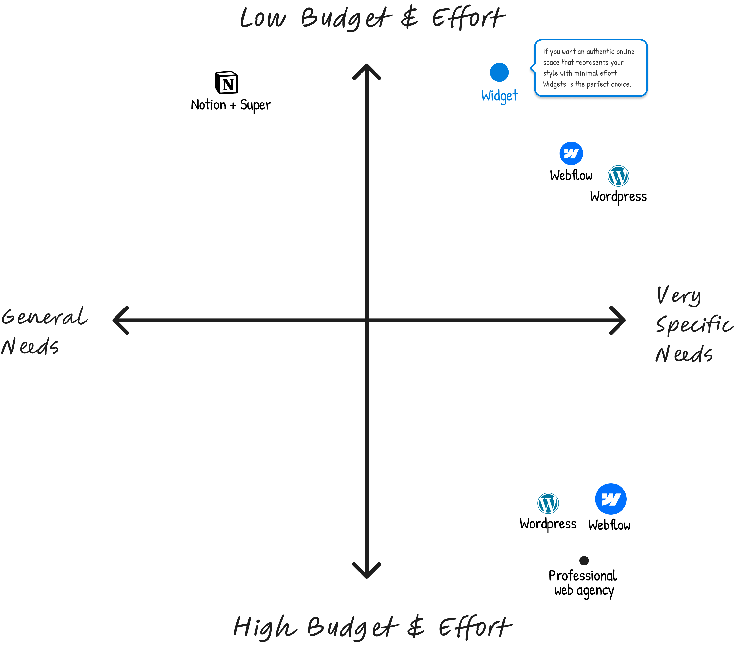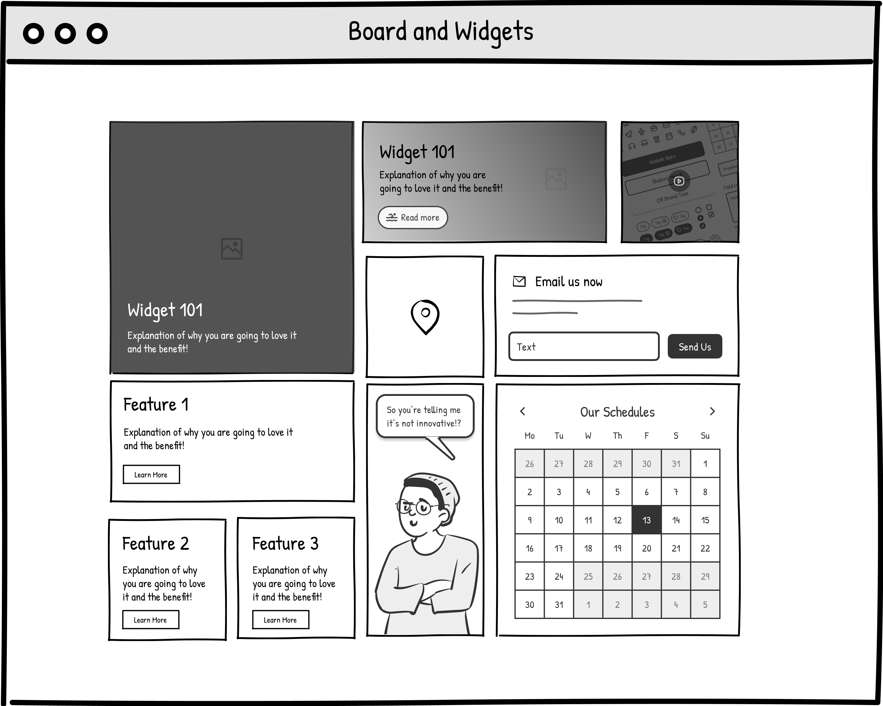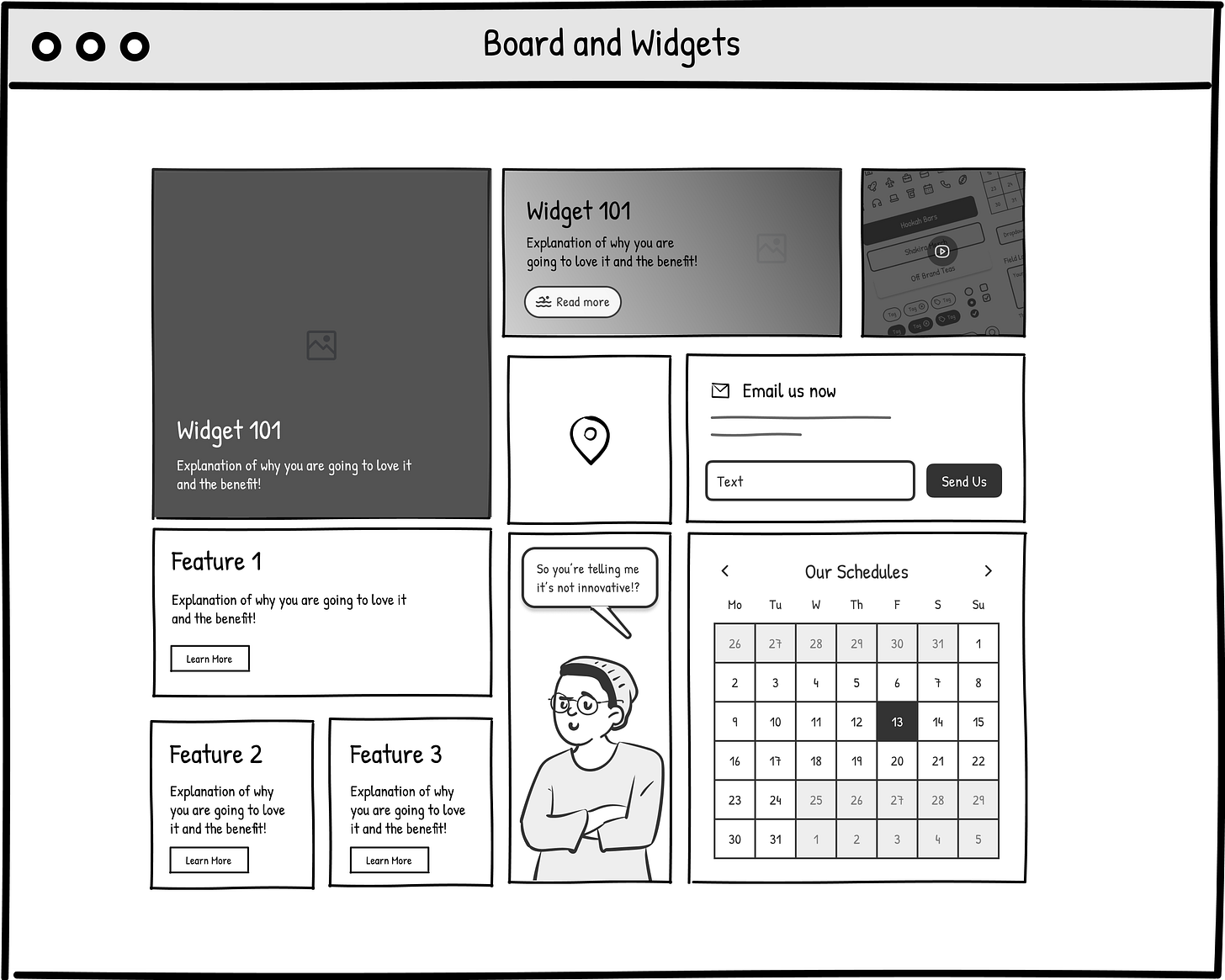 Shifting our perspective, we've reimagined the traditional website. Rather than viewing it as a complex, lengthy scroll, we now see it as a 2D canvas, a dynamic board where each section of the website is transformed into customizable widgets.